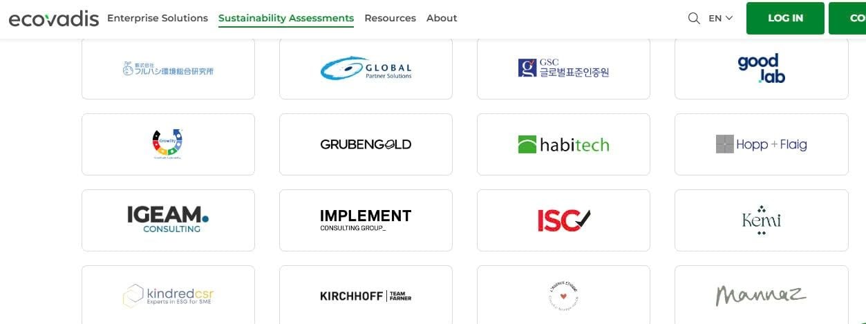 EcoVadis là một nền tảng trực tuyến thực hiện đánh giá, xếp hạng tính bền vững dựa trên bằng chứng, cho phép các công ty đánh giá hiệu suất ESG của các nhà cung cấp trên toàn cầu. Ecovadis xem xét một loạt các vấn đề CSR (Corporate Social Responsibility – Trách nhiệm xã hội của doanh nghiệp) theo bốn chủ đề chính: “Môi trường - Environment”, “Lao động & Nhân quyền – Labor and Human Rights”, “Đạo đức - Ethics” và “Mua sắm bền vững – Sustainable procurement”. Hệ thống này được thiết lập dựa trên các tiêu chuẩn quốc tế như Sáng kiến Báo cáo Toàn cầu (GRI), Hiệp ước Toàn cầu của Liên Hợp Quốc (UNGC), và ISO 26000.